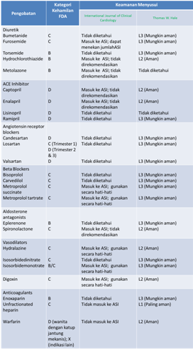 Apakah Ibu dengan Kardiomiopati Peripartum dapat menyusui? Oleh : dr. Erika Agustianti PENDAHULUAN Kardiomiopati Peripartum (KMPP) , sejenis kardiomiopati dilatasi yang penyebab pastinya belum diketahui,biasanya terjadi pada wanita yang sebelumnya sehat di akhir bulan kehamilan dan sampai 5 bulan setelah melahirkan. Meski kejadiannya rendah yaitu kurang dari 0,1% kehamilan, tetapi tingkat morbiditas dan mortalitasnya tinggi yaitu 5% sampai 32%. Hasil akhir kardiomiopati peripartum juga sangat bervariasi. Bagi beberapa wanita, status klinis dan ekokardiografi dapat membaik dan kadang-kadang kembali normal, sedangkan untuk orang lain, penyakit ini berlanjut sampai gagal jantung dan bisa menyebabkan kematian jantung mendadak. Epidemiologi Kejadian KMPP yang dilaporkan bervariasi. Kejadian dilaporkan berkisar 1 dari 299 kelahiran hidup di Haiti, 1 dari 2229 kelahiran hidup di California Selatan, 1 dari 4000 kelahiran hidup di Amerika Serikat. Beberapa faktor risiko mempengaruhi wanita dengan KMPP yaitu meningkatnya usia ibu, multiparitas, kehamilan multipel , dan kehamilan yang dipersulit oleh preeklampsia dan hipertensi gestasional. Etiologi KMPP dapat dibedakan dari bentuk lain kardiomiopati karena terjadinya saat hamil. Penyebab pasti belum diketahui. Diduga disebabkan oleh; virus miokarditis, respon imun abnormal terhadap kehamilan, respon maladaptif hemodinamik terhadap kehamilan, stress-activated cytokines, ekskresi prolaktin berlebihan, dan tokolisis berkepanjangan. Manifestasi klinis dan Diagnosis Gambar 1. Penilaian Kardiomiopati Peripartum Gambar 2. Diagnosa Kerdiomiopati Peripartum Pengobatan Pengobatan untuk KMPP didasarkan pada pedoman standar Pengobatan Gagal Jantung, termasuk ACE-inhibitor, ARBs, beta-bloker, spironolakton, digoksin, diuretik, vasodilator dan inotrop jika dibutuhkan. Tabel 1. Keamanan Obat Gagal Jantung Pada Kehamilan dan Menyusui Tabel 2. Strategi yang diusulkan untuk terapi obat gagal jantung pada pasien kardiomiopati peripartum setelah maupun sebelum melahirkan dan sesudah pemulihan lengkap struktur dan fungsi ventrikel kiri. *Menurut pedoman ESC, intruksi produsen terutama didasarkan pada fakta bahwa obat-obatan tidak diuji pada saat hamil dan menyusui. Untuk ini dan untuk alasan hukum, obat-obatan sering dianggap dilarang selama kehamilan dan menyusui. Pada pasien dengan risiko rendah untuk gagal jantung dan dengan fungsi ventrikel normal, diperlukan observasi singkat beberapa jam sampai 48 jam setelah melahirkan. Menyusui dibolehkan pada pasien penyakit jantung, meski beberapa obat merupakan kontraindikasi bagi ibu menyusui. Hal ini dapat menurunkan toleransi kerja atau resiko mastitis dan bakteremia pada sebagian ibu menyusui. Penggunaan diuretik dapat mengganggu produksi asi. Pada periode post partum beta-blocker harus dilanjutkan dan ACEI dosis rendah harus diberikan dengan peningkatan titrasi sesuai dosis toleransi bahkan untuk wanita menyusui sekalipun. Pasien dengan KMPP dapat memilih untuk menyusui setelah melahirkan, tetapi hal ini harus didiskusikan dengan dokter. ACEI, beta-bloker dan diuretik umumnya dianggap aman. REFERENSI Coyle, L.J., Jensen, L., and Sobey, A., 2012, Peripartum Cardiomyopathy: Review and Practice Guidelance, American Jounal of Critical-Care, Vol. 12, No. 2, p.89,90,93 & 94. Sharma, Kavita & Russell, Stuart D., 2015, An Update on Peripartum Cardiomyopathy in the 21st Century, International Journal of Clinical Cardiology, p.4 & 5. Lewey, Jennifer & Haythe, Jennifer, 2014, Cardiomyopathy in Pregnancy, Seminars In Perinatology 38, Elsevier, p.315 & 316. Givertz, Michael M., 2013, Peripartum Cardiomyopathy, Cardiology Patient Page, American Heart Association, Inc., p.625. Hale, Thomas W. Hartman, 2012, Textbook of Medications & Mother’s Milk 15th Edition, Texas, Hale Publishing. Ilustrasi Kasus Nama : Ny. Y Usia : 40 tahun Riwayat kelahiran :P3A0 Nama bayi : Bayi Ny.Y1 (Perempuan) Bayi Ny. Y2 (Laki-laki) Riwayat kelahiran : Sectio Caesaria atas indikasi bayi kembar BB Lahir : Bayi Ny. Y1 2900 gram Bayi Ny. Y2 2900 gram Ny. Y usia 40 tahun melahirkan bayi kembar di RSSH melalui bedah caesar karena bayi kembar. Pada pemeriksaan fisik Bayi Ny. Y1 dan Ny.Y2 dalam keadaan baik. Ny.Y dengan lower – normo – milk supply. Pada observasi menyusui bayi Ny. Y1, perlekatan masih kurang dan pada hari pertama ibu masih kesulitan untuk menyusui bayinya karena kondisi setelah operasi merasakan nyeri di perutnya. Begitu juga dengan bayi Ny. Y2. Pada hari kedua Ny. Y sudah mencoba posisi menyusui football tetapi Ny. Y lebih nyaman untuk menyusui bayi satu per satu. Ny. Y pulang pada hari ketiga, terjadi penurunan berat badan bayi Ny. Y1 sebanyak 6,8% dari berat badan lahir. Begitu juga dengan bayi Ny. Y2 sebanyak 6,8% dari berat badan lahir. Sekitar 3 minggu kemudian Ny. Y datang ke UGD dengan keluhan sesak nafas dan jantung berdebar dan ketika pada malam hari tidak bisa tidur. Pada pemeriksaan fisik ditemukan bunyi jantung I-II irreguler dan edama pada tungkai kaki kiri dan kanan. Ny. Y didiagnosa dengan KMPP, lalu dikonsulkan ke dokter spesialis jantung dan di rawat inap. Selama perawatan Ny. Y mendapat terapi lasix, spironolacton, ramipril, concor, KSR (Kalium Klorida). Pada pemeriksaan radiologi ditemukan kesan pembesaran jantung ec efusi perikardial dan edema paru, efusi pleura. Pada pemeriksaan echokardiografi disimpulkan sesuai dengan gambar KMPP. Pasien juga sempat mengalami kejang yang diduga karena hipokalemi. Pada hari keempat pasien dibolehkan pulang dengan melanjutkan terapi oral yang telah diberikan. Selama perawatan ibu tidak menyusui bayi kembarnya, bayi diberikan susu formula memakai dot. Ketika ibu pulang dokter spesialis jantung menyarankan untuk tidak menyusui bayinya karena obat yang dipakai tidak aman untuk ibu yang menyusui. Diskusi Kasus : KMPP merupakan penyakit yang memiliki angka mortalitas dan morbiditas yang tinggi. Diagnosa dini dan diikuti dengan terapi yang berkelanjutan sangat bermanfaat bagi sejumlah pasien.
