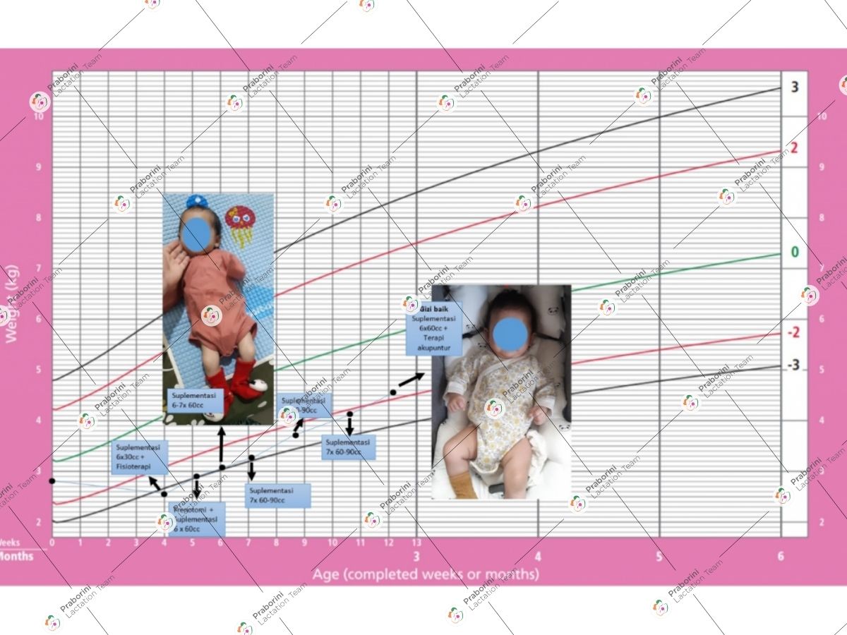 Menyusui bayi dengan kondisi Gagal Tumbuh, Tongue Tied Sub-mukosa dan Lip Tie grade 4 (Bagian 1) Oleh : dr. Hazwani Fadhillah Nasution Bayi AR adalah anak pertama dari pasangan Ny. RA dan Tn. A yang lahir di salah satu RSIA kota Medan pada tanggal 18 januari 2021. Ny. RA datang Bersama nenek (orang tua ny. RA) membawa bayi AR untuk konsultasi menyusui. Bayi AR lahir melalui proses persalinan SC diusia kehamilan cukup bulan dengan berat lahir 2820gr. Sejak lahir di RS bayi AR langsung diberi sufor memakai dot karena alasan asi ibu belum keluar. Selama 1 minggu bayi AR mendapat asupan sufor saja. Setelah itu baru ny. AR belajar menyusui bayi AR karena merasa asi sudah ada. Ny. AR mengeluhkan bayi AR menetek lama, sulit menangkap payudara, mudah lepas dari payudara, menghisap sebentar-sebentar lalu terdiam/tertidur didepan payudara dan setelah menetek bayi AR tetap rewel menangis seolah tidak puas menyusu. Oleh karena itu Ny. AR selalu menambahkan 30cc sufor memakai dot setelah bayi AR menetek, agar ia bisa puas dan tidur lelap. Pada kunjungan pertama di tanggal 16 Februari 2021, bayi AR berusia 29 hari. Saat ditimbang, berat badannya adalah 2590gr. Bayi AR tidak mengalami kenaikan berat badan sama sekali justru turun sekitar 230gr. Karena di umur 29 hari bayi AR belum mencapai berat lahir dan berdasarkan kurva pertumbuhan standar menurut Badan Kesehatan Dunia (WHO), berat badan bayi AR menunjukkan kondisi gagal tumbuh (Failure to Thrive) dan Gizi buruk (berat <-3SD). Dari pemeriksaan fisik ditemui payudara ny. RA dalam batas normal dan produksi asi ibu menurun. Pada bayi ditemui adanya tali lidah pendek tersembunyi dibelakang lidah yang disebut dengan tongue tie sub-mukosa serta lip tie derajat 4. Saat pemeriksaan proses menyusui, tampak bayi AR sangat sulit diposisikan untuk menyusu dengan nyaman, tubuhnya kaku dengan kedua tangan cenderung menekuk didepan dada. Dalam posisi cross cradle, bayi melekat hanya di puting ibu, menghisap kontinyu dan hanya beberapa kali terdengar menelan, kemudian payudara gampang terlepas dari mulut bayi. Ny. RA juga merasa nyeri saat bayi menyusu walau tidak dijumpai adanya lecet pada kedua putting. Kemudian kami menjelaskan kondisi bayi AR dan rencana terapi yang akan dijalankan kepada Ny. AR, termasuk rencana Tindakan frenotomi, penggunaan supplementer, fisioterapi untuk bayi AR, serta terapi tambahan untuk ny. AR. Akhirnya ny. AR sepakat untuk dilakukan pemasangan supplementer pada ibu dan fisioterapi pada bayi terlebih dahulu dan ibu meminta waktu untuk berdiskusi dengan suami untuk pelaksanan Tindakan frenotomy. Pada kunjungan pertama ini, ibu diajarkan menyusui langsung dengan terpasang alat supplementer berisi susu formula yang ibu bawa dari rumah. Alat supplementer berupa NGT fr5 dan spuit 50cc, kami isi dengan 30cc susu formula. Saat bayi AR melekat dipayudara, ibu mendorong susu formula di alat supplementer untuk memancing agar bayi mau menghisap. Selanjutnya ibu akan menggunakan alat supplementer ini sebanyak minimal 6x30cc sehari. Kami juga menyampaikan bahwa pada kasus ini dimana bayi AR sudah dalam kondisi gizi buruk, diawal-awal bayi AR mungkin hanya mampu menghabiskan sedikit susu formula di alat suplementernya, namun kemungkinan besar dosis susu formula nya akan meningkat lebih dulu seiring gizi bayi AR semakin membaik. Ny. RA juga diberi laktogog serta diberi kontak fisioterapis untuk segera dihubungi. Saat kunjungan kedua, di tanggal 23 Februari 2021, ny. RA datang hanya berdua dengan bayi AR. Saat ditimbang, berat badan bayi AR 2870gr. Di umur 36 hari, bayi AR sudah melampaui berat badan lahir dan meningkat sebesar 40gr/hari sejak 1minggu terakhir (dipasang supplementer). Status gizi bayi AR berdasarkan kurva pertumbuhan standar WHO telah meningkat diatas garis -3SD yang artinya sudah beranjak dari status gizi buruk menjadi gizi kurang. Namun ny. RA masih mengeluhkan proses menyusui yang dia rasa kurang optimal. Bayi AR sudah tidak menggunakan dot lagi namun ia menyusu per 1 jam sekali dan cenderung tidak banyak menghisap. Ibu harus selalu mendorong susu formula dalam supplementer agar bayi AR mau menghisap. Ibu juga masih merasa nyeri saat bayi menyusu, karena pelekatan yang masih dangkal serta mudah lepas. Bayi AR juga sudah difisioterapi sebanyak 3x, ibu merasa banyak kemajuan pada bayi AR, termasuk badan yang sudah tidak terlalu kaku dan mudah untuk diposisikan menyusui dengan nyaman. Dikunjungan kedua ini ny. RA sepakat untuk langsung dilakukan Tindakan frenotomy. Setelah Tindakan dilakukana, ibu dengan terpasang supplementer berisi formula sebanyak 60cc, bayi AR langsung disusui. Terlihat pelekatan lebih dalam, mulut bayi terbuka lebih lebar, menghisap kontinyu dan sering terdengar suara menelan, ibu tidak lagi merasa nyeri dan susu formula dalam supplementer terhisap oleh bayi tanpa ibu perlu mendorong spuit supplementer. Bayi menyusu hingga 60cc susu formula dalam supplementer habis, tidak lama kemudian bayi tertidur. Kemudian ibu diajarkan melakukan senam lidah-senam bibir untuk menjaga penyembuhan luka post frenotomy dengan baik. Bayi juga diberi gel untuk di oles di luka. Ibu mendapat terapi laktogog yang dikonsumsi 2x sehari. Ibu juga dianjurkan untuk mengganti susu formula menjadi yang kurang manis atau berasa cenderung pahit untuk menghindari efek sakau pada bayi saat suplementasi dihentikan nantinya. Kunjungan ketiga, seminggu setelah Tindakan frenotomy. Tanggal 2 maret 2021. Ibu mengatakan menyusui sudah lebih nyaman dan merasa bayi semakin mudah menyusu. Pelekatan lebih dalam, tidak ada rasa nyeri dan tidak mudah lepas lagi. Diusi bayi AR yang berumur 1bulan 15 hari ini, berat badannya adalah 3050gr dengan kenaikan 25,1gr/hari. Ibu membeli SNS dan memakainya 7x sehari diisi dengan susu formula sebanyak 60 per kali menyusui. Ibu telah mengganti susu formula dengan rasa yang pahit. Ibu tetap mengonsumsi laktogog sebanyak 2 tablet sehari. Kunjungan keempat pada tanggal 9 maret 2021. Ibu merasa bayi AR sudah semakin pintar men